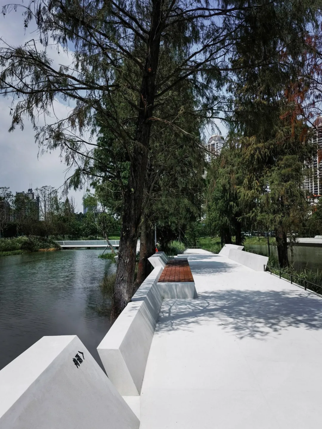 步入場(chǎng)地,映入眼簾的是茂密的原生落羽杉,以及被落羽杉包圍的一棵榕樹;在河流的倒映下,落羽杉和榕樹形成了一幅美妙的畫卷,沉淀著時(shí)間與歲月的記憶。