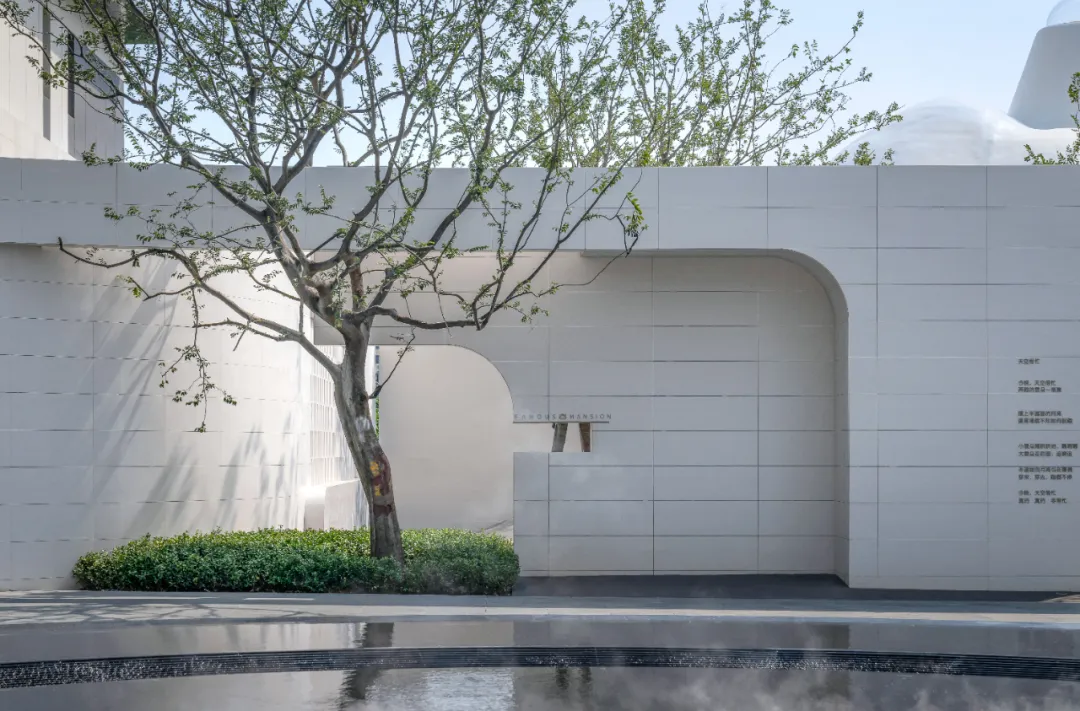 穿過大門,望向內(nèi)庭院,一幅充滿未來感、不失現(xiàn)代精致的景象就在眼前??Х任菰煨挽`感來源于藝術(shù)家Tishk Barzanji的超現(xiàn)實(shí)主義插畫,我們提取插畫中的流線造型,結(jié)合本項(xiàng)目“未來社區(qū)”的主題,打造出具有設(shè)計(jì)感、先鋒性的構(gòu)筑物。