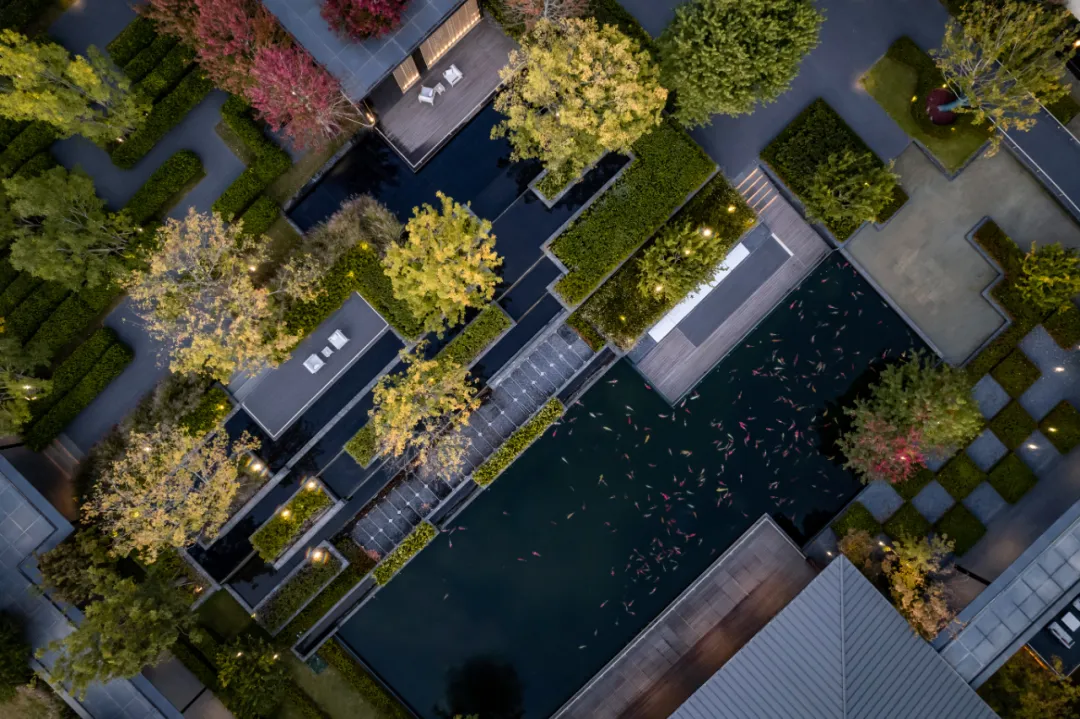時間在日光與月色中流轉(zhuǎn),萬物在四季變遷中更迭。步入金秋的圖景中,窺見生命與時間的秘密,主庭院區(qū)充滿了恬靜與祥和。