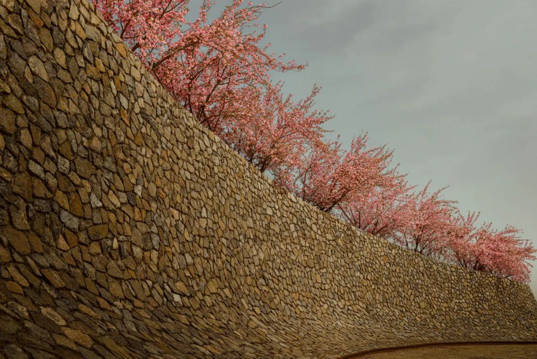 遠(yuǎn)山的呼應(yīng),毛石的齟齬,櫻花的綻放,
